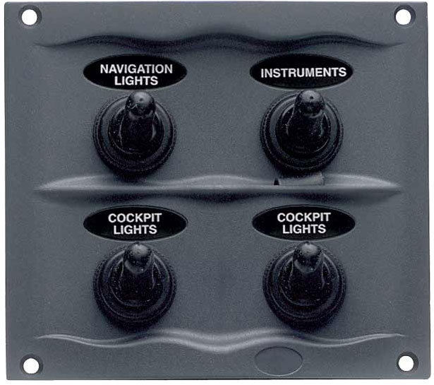 Sprutsikkert bryterpanel med vippebrytere. Meget høy kvalitet fra BEP. Sikringer på baksiden. IP=56. 4 brytere.