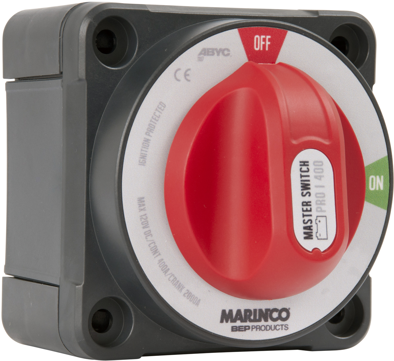 400 A konstant, 600 A i opptil 5 min og 1500 A/10 sekunder. Kan monteres utvendig, flush eller bakmontert.Brukes ofte i fiskebåter og der det er et krav at både + og – brytes.