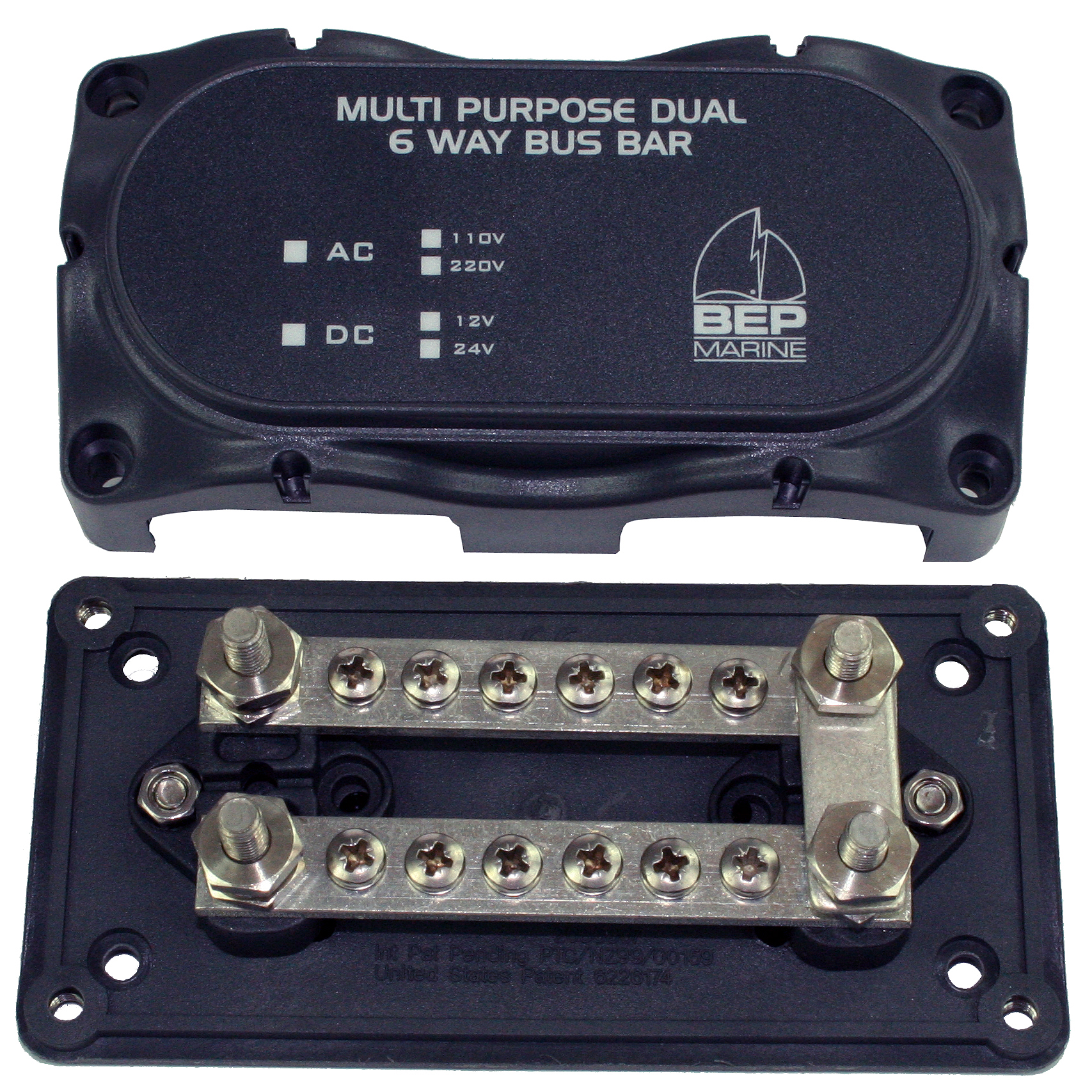 Koblingsboks av høy kvalitet, bygd for å tåle et tøft båtmiljø. 75 A. Kan brukes til både + og -koblinger. 12 punkter. Multi AC-DC. Leveres med deksel.