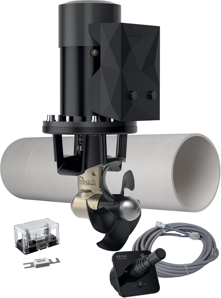 Quick BTQ 185-75 er et svært godt valg til båter opptil ca 33 til 43 fot. Her får du alt du trenger – baugpropell, tunell, joystickpanel, hovedsikring og signalkabel. Det eneste du trenger i tillegg er strømkabler.