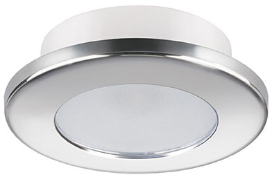 Downlight med sirkulær ramme, laget av 316 AISI rustfritt stål med satinisert anti-sjokk materiale diffuser, ideell for tak- og veggmontering.