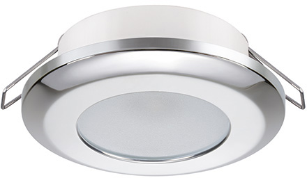 Downlight med sirkulær ramme, laget av 316 AISI rustfritt stål med satinisert anti-sjokk materiale diffuser, ideell for tak- og veggmontering.