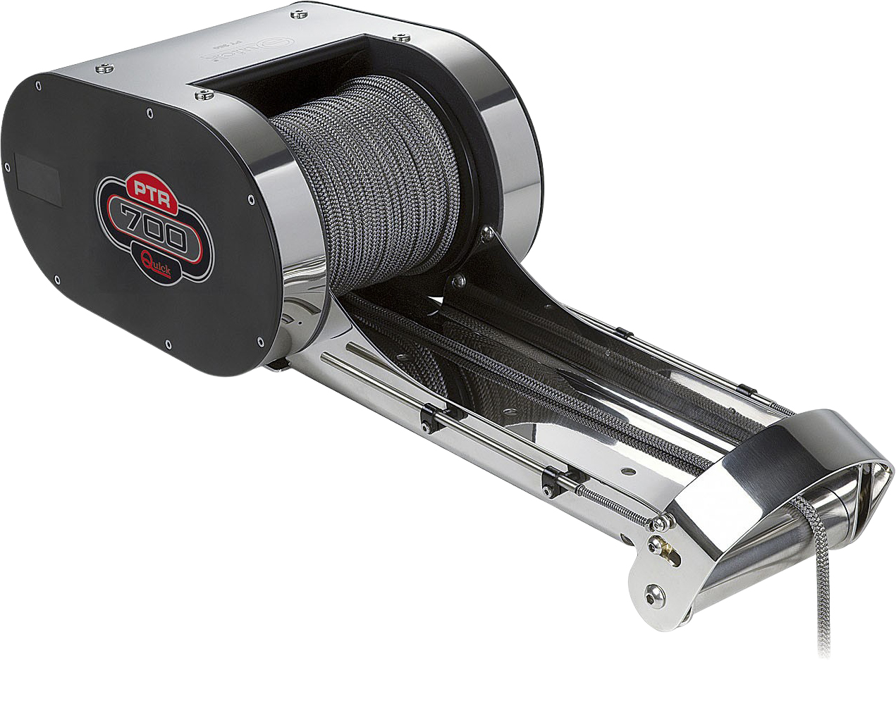 Quick PTR 700 BR-X er en ankervinsj for deg som ønsker en «alt-i-ett-løsning». Vinsjen har trommel for tauet. Du trenger derfor ikke et rom for oppbevaring av tau. PTR 700 leveres komplett med ankerrulle og 30 meter dyneematau ferdig montert. Med ankerrullen montert har PRT autostopfunksjon som stopper vinsjen med en gang ankeret er helt oppe.