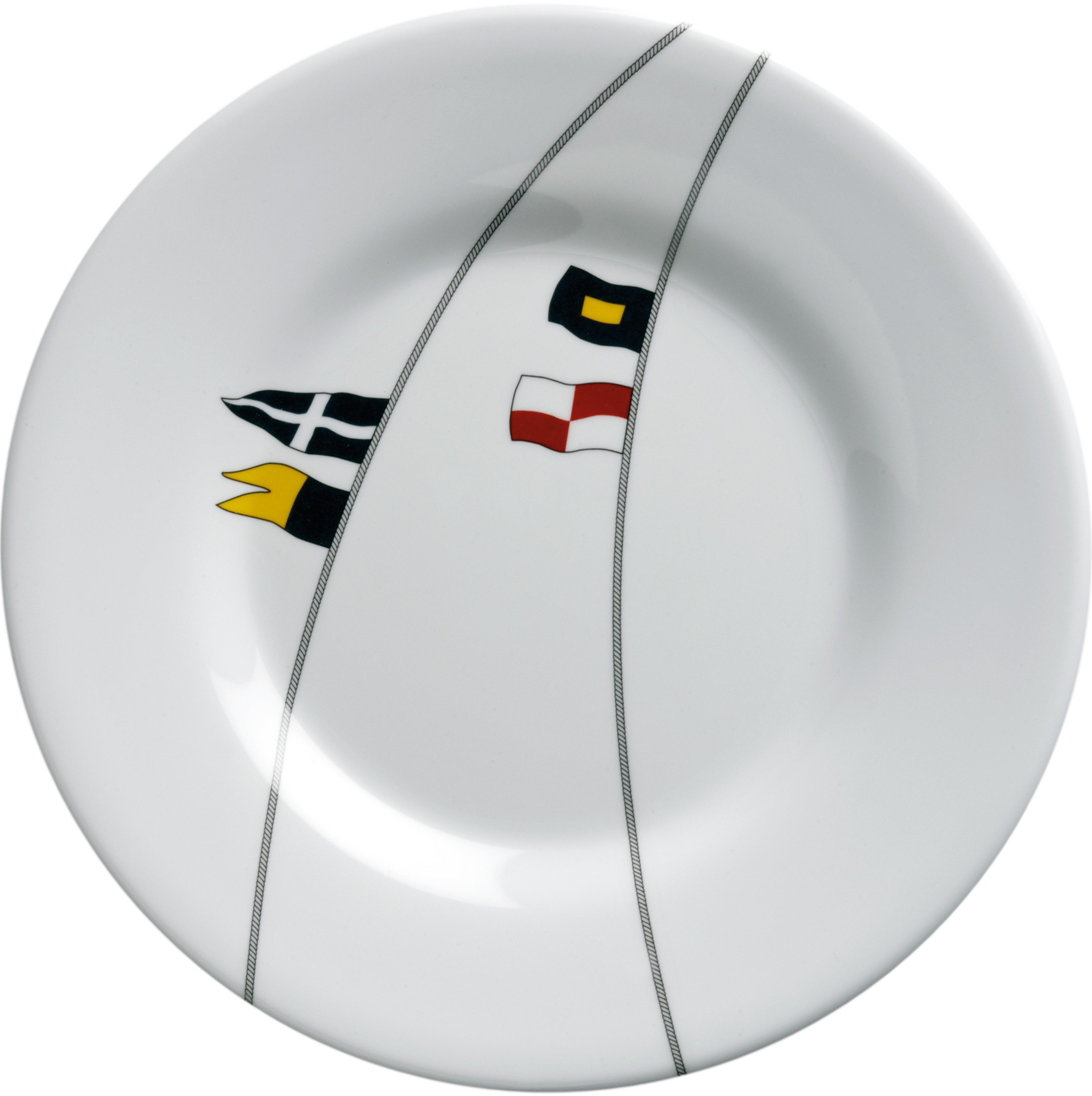 Lekkert sett med 6 frokosttallerkener med et maritimt design. Gummiring under tallerknene gjør dem sklisikre, og ekstra praktiske til bruk i båt. De gjør seg også godt på hyttekjøkkenet, eller i sjøbua.